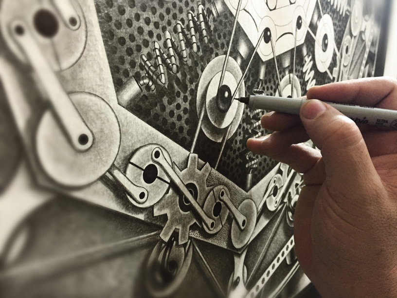 Diaphragm, 2015. Graphite and Ink on paper. 27 Inches by 26 Inches.