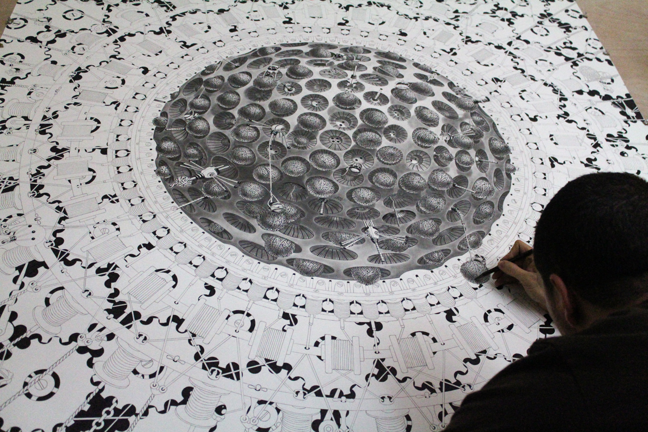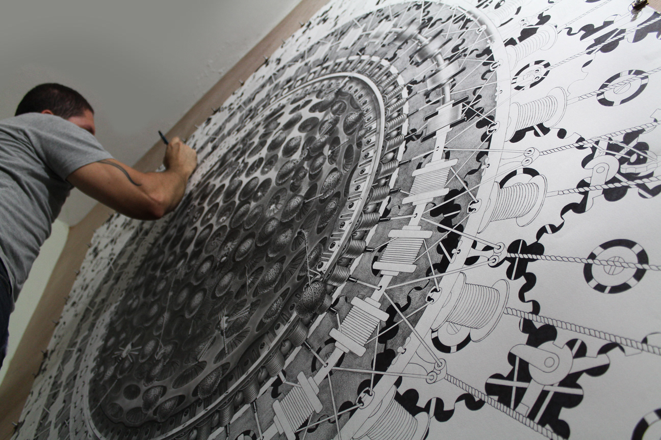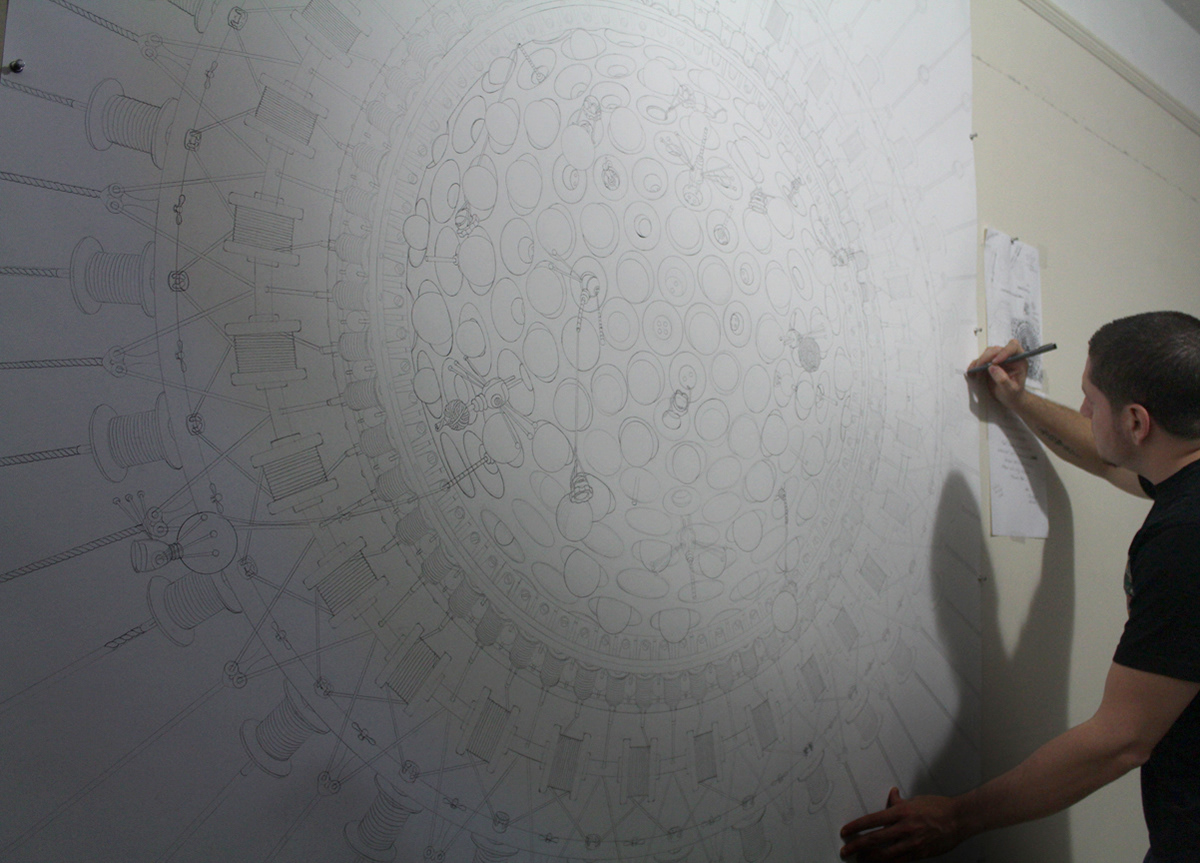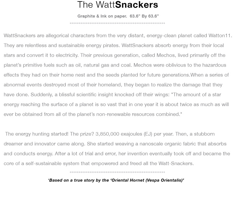 The WattSnackers. Graphite & Ink on Paper. 63.6" By 63.6" Private Art Collection.
